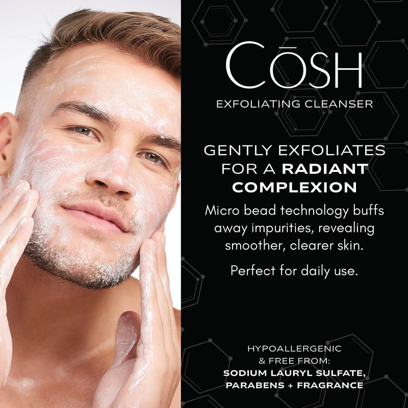 - ELEVATE YOUR SKINCARE ROUTINE: Turn your morning routine into a calming spa experience with the Cōsh Exfoliating Cleanser. This high-quality skincare essential is perfect for both men and women, gently exfoliating to reveal smoother, more youthful skin. It fits easily into your daily regimen, leaving your skin looking refreshed and radiant while boosting your confidence with each use.