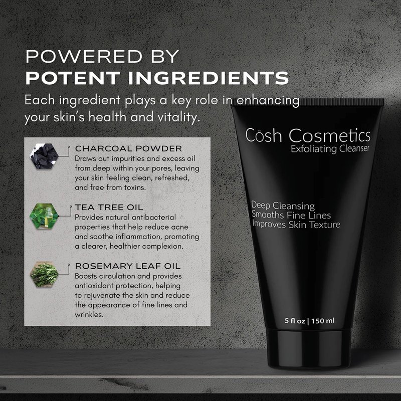 - VERSATILE USE FOR OPTIMAL SKIN CARE: Elevate your skincare regimen with the Cōsh Exfoliating Cleanser, a versatile formula that adapts to your needs. Use it as a daily face wash to maintain a clear, vibrant complexion, or apply it every other day - as a deep-cleansing masque for enhanced exfoliation and hydration. This multifunctional cleanser is designed to fit seamlessly into your routine, delivering consistent results for glowing, youthful skin.