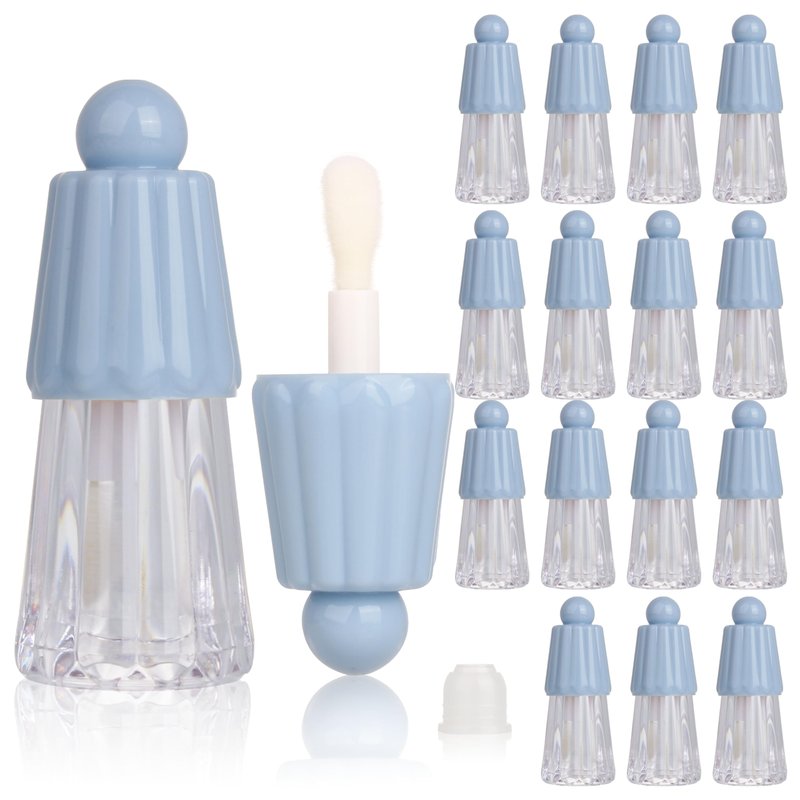 COSIDEA 15pcs 4ml Cute empty lip gloss tubes with wand Blue short chubby lipgloss tube big applicator container