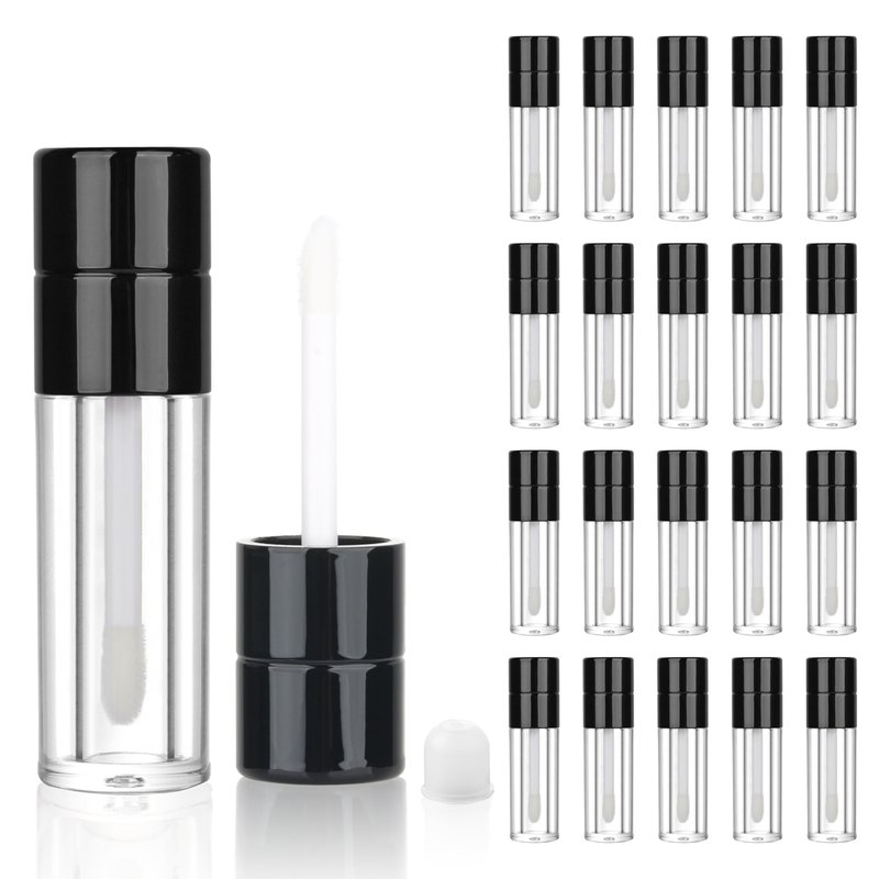 COSIDEA 20pcs Round 4ml 0.13oz Black Empty lip gloss tubes with wand Lipgloss tube containers for lip oil packing
