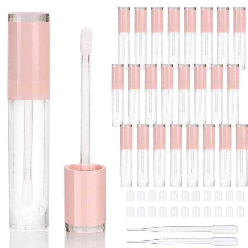 COSIDEA 26 pcs Refillable Empty 8ml Lip Gloss Tubes with clear Wand,Round Pink Lipgloss Containers,DIY cosmetic packing Container Bulk Wholesale