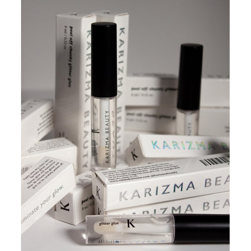 The perfect festival glitter glue is here. Once you go Karizma, you’ll never go back. We've made the glitter removal experience easier for you with our new peel off glitter glue formula. Our glue is perfect for after long days at the festival when you just want to take off your makeup and glitter without all the mess in your tent. Our simple, peel off removal is clean and easy with no mess, leaving your skin clean without the need to scratch and scrub off the glitter off your skin. This formula works seamlessly with our chunky glitters on the face and body. Apply a thin layer of glue onto clean, dry skin using the applicator brush directly where you want glitter to be applied. Dust your favourite glitter on top of the glue and allow to dry. Let sit for at least one hour before attempting to peel off. The glitter glue comes in a tube with an easy to use applicator, the product is 9ml. Beauty essentials to illuminate your glow.