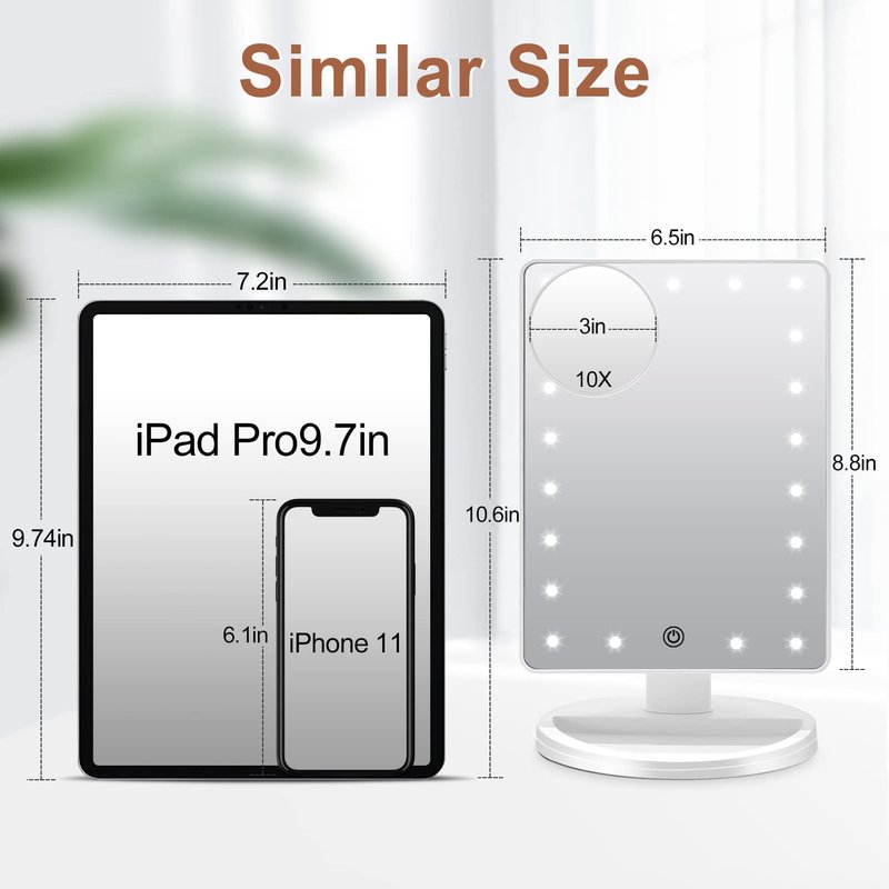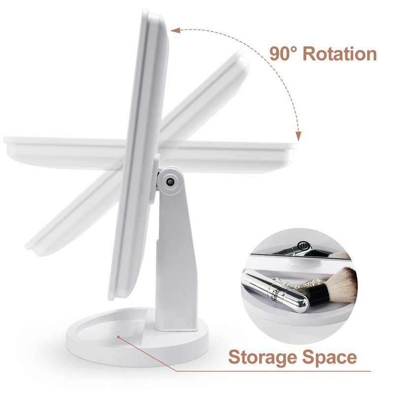 - 5.【180 Degree Free Rotation】This light up mirror stands on your countertop and can be freely adjusted. This is fixed at a perfect and comfortable viewing angle. It's an ideal gift for mother, sister, wife, girlfriend, makeup artist, etc on Valentine's Day, Mother's Day, Christmas, anniversaries or other special occasions. If you prefer larger mirror, please search B07RP7MKRL on Amazon.