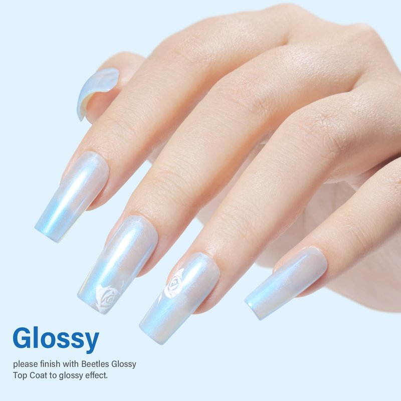 COSMOO Blue Shimmer Air Dry Nail Polish, Shimmer Blue Iridescent Quick Dry Nail Lacquer for Nail Art Varnish-10ml
