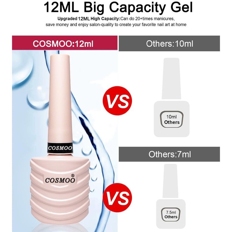 - Big CAPACITY:Compared with other 5ml or 8ml small capacity, our Gel Nail Polish capacity is 12ml, which more durable.