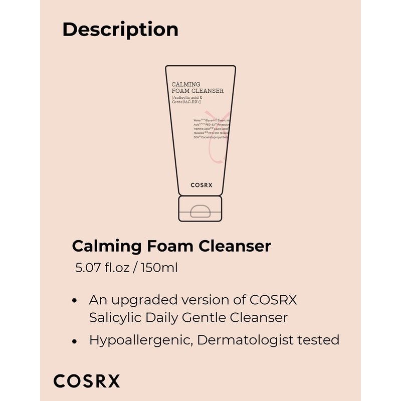 - COSRX Standards: All COSRX products are formulated with skin-friendly ingredients that alleviate irritated skin. Hypoallergenic, Dermatologist tested, Animal Testing-FREE, Parabens-FREE, Sulfates-FREE, Phthalates-FREE