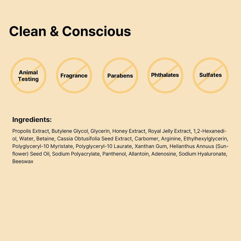 - 87.26% of Propolis Extract | Reduces redness and helps the healing process of stressed skin.