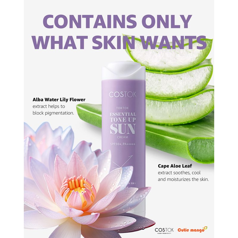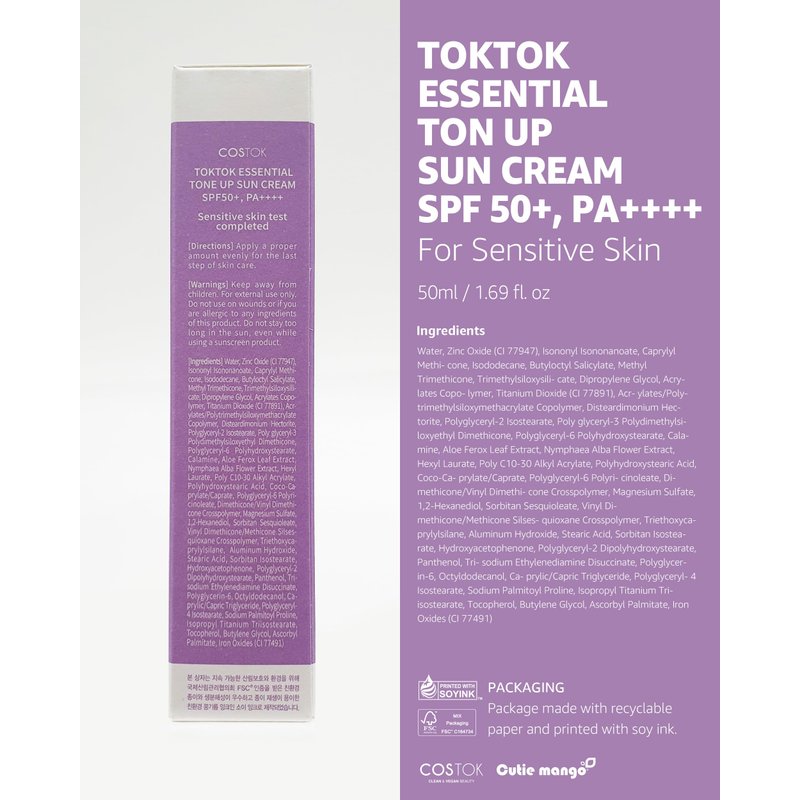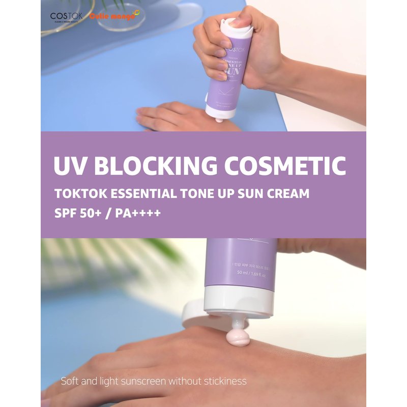 - [Costok Essential Tone Up Sun Cream] Costok Tok Tok Essential Tone Up Sun Cream is a product that effectively blocks UV rays by protecting the skin from UV-A and UV-B rays (SPF 50+/PA++++). A great facial sunscreen for everyday activities and outdoor activities.
