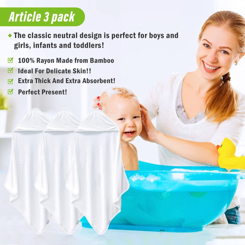- DURABLE AND EXTRA ABSORBENT! The baby towel is extremely durable and can withstand countless washes. Drying your children quickly while also keeping them warm and cozy. Wrap your little one in soft, fluffy towel after bathing him in a tub, at the pool or beach.