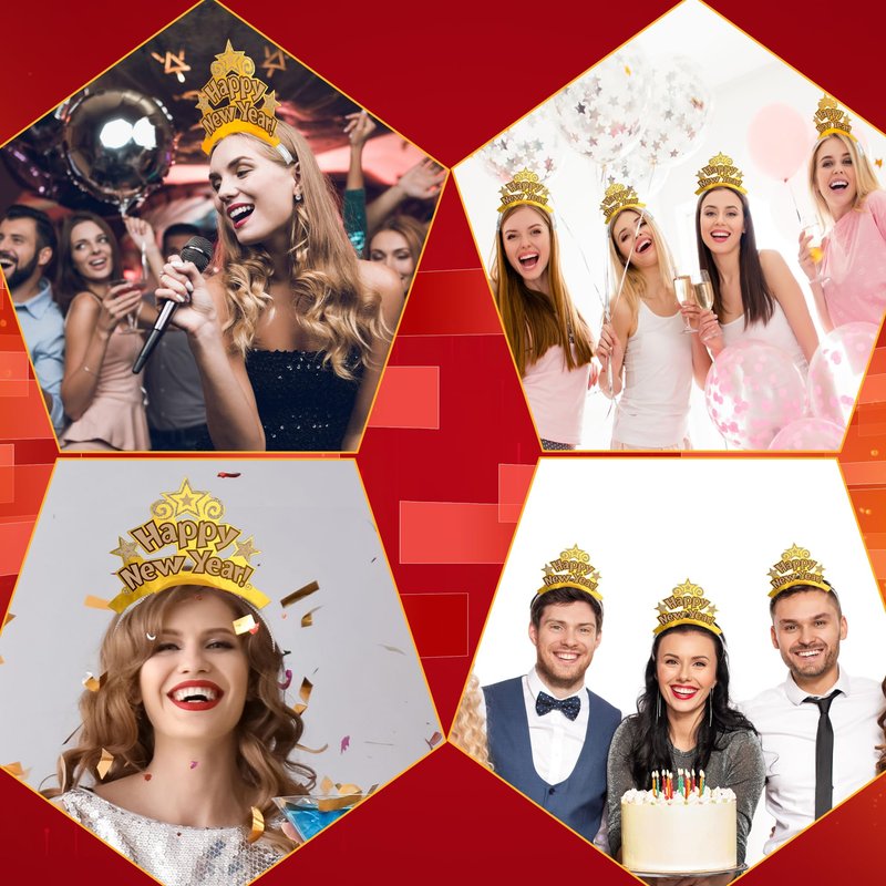 - Quality material: the Happy New Year headbands and hats are made of quality plastic and golden cardboard, durable and shiny, it's super easy and comfortable to wear, perfect for New Year Party, can bring joyful New Year atmosphere