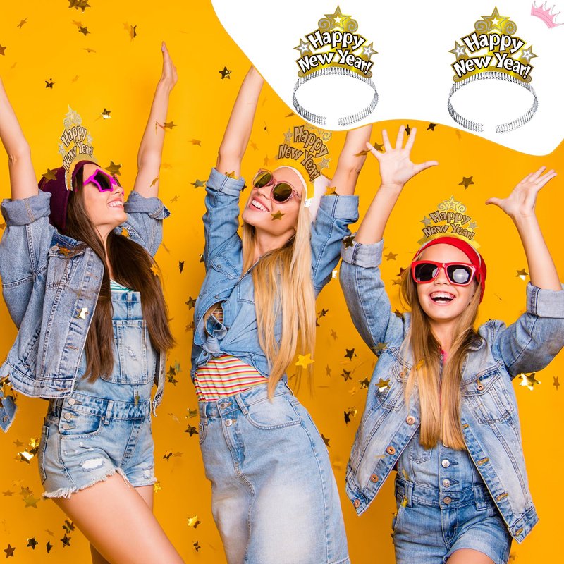 - Package include: you will receive 12 pieces Happy New Year headband or hats, designed in golden color, enough quantity for party supplies or replace, create a kind of joyful holiday atmosphere for New Year parties, and also suitable for kids' classroom activity or home party, to bring more fun