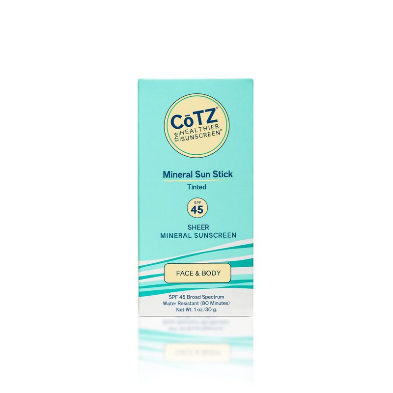 CoTZ Mineral Sun Stick SPF 45 is the perfect sunscreen companion. Glides on invisibly to a sheer finish. Perfect for touch-ups or to reapply on exposed areas like ears, face, and hands. Water resistant (80 minutes). Easy On-the-Go application. Mess Free. Tinted for translucent finish. Great for touch ups. Quick (re)application. Reef Friendly. Subtle Luminescence