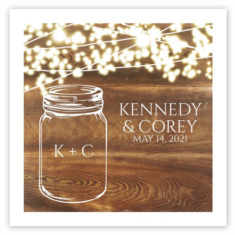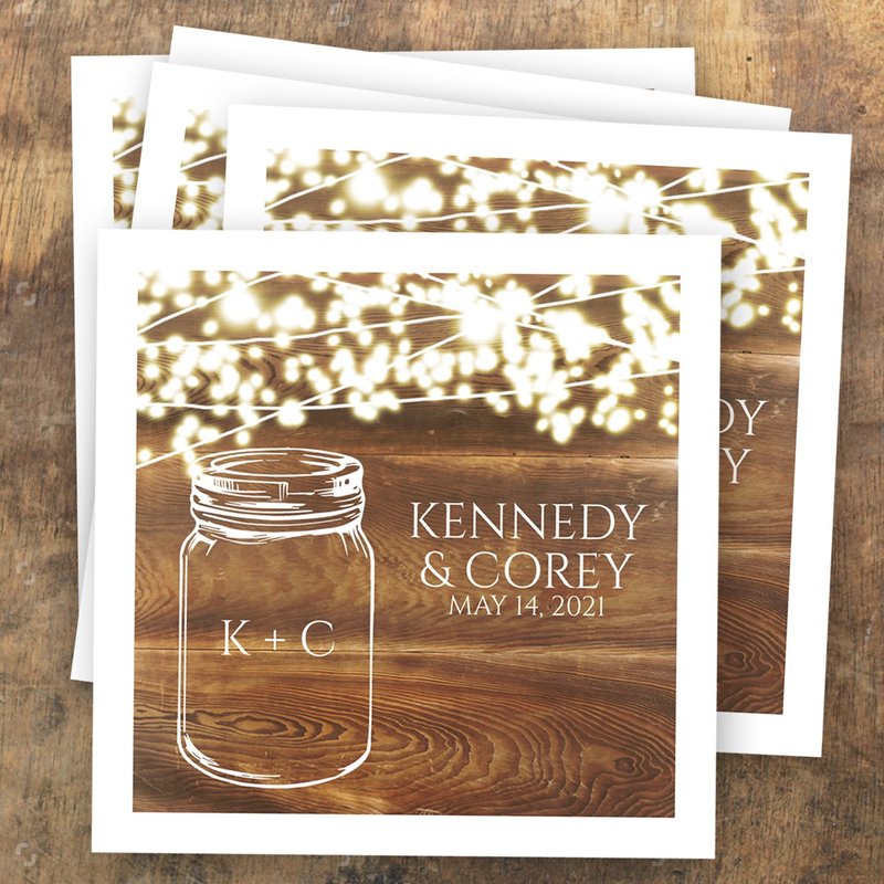 - Pack contains 100 personalized rustic lights and jar beverage napkins.