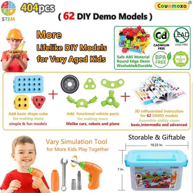 COUOMOXA Building Toys, 404 Pieces STEM Toys Kit Creative Construction Engineering Learning Set for 5, 6, 7, 8+ Year Old Boys&Girls Best Toy Gift for Kids |Take-A-Part Building Blocks