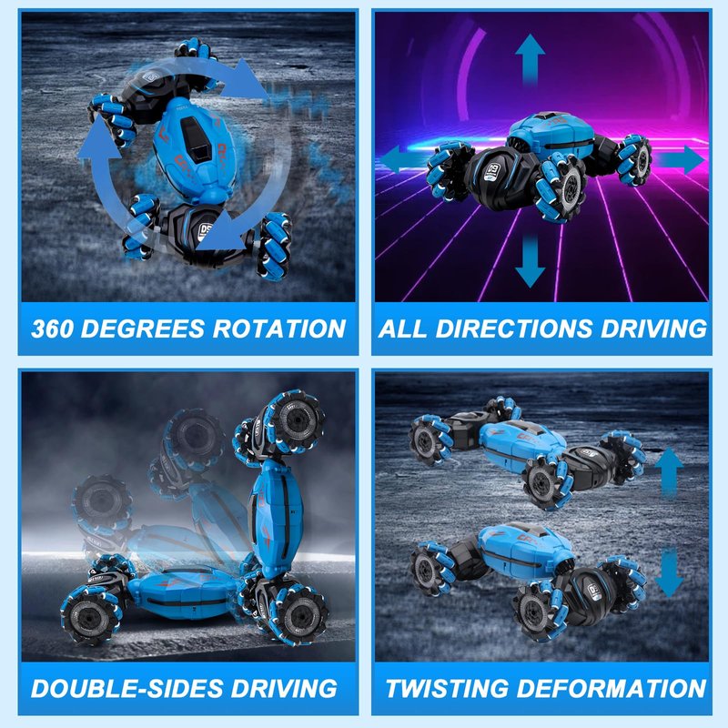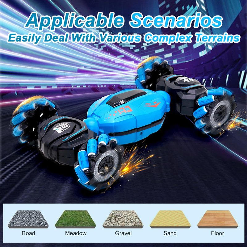 COUOMOXA Stunt Car Sensing – Perfect for Endless Fun and Action The COUOMOXA Stunt Car offers an exhilarating driving experience with its 2.4GHz remote control, allowing kids to perform incredible stunts, spins, and drifts. Whether indoors or outdoors, the car’s advanced gesture-sensing technology makes it easy to control, offering hours of non-stop entertainment. The car is designed to tackle a variety of terrains, making it the ultimate vehicle for adventurous kids. Its fast speed, powerful motor, and rechargeable battery make it ideal for long-lasting play and excitement. Perfect for kids who love racing, stunts, and off-road exploration, this RC car brings action and fun to any environment. Perfect for Boys and Girls Ages 6-12 – Ideal Gift for Young Racers This remote-controlled stunt car is designed for children aged 6-12 who crave action, adventure, and fun. Whether they’re new to RC toys or seasoned racers, this car provides a thrilling challenge for all skill levels. The intuitive controls, durable design, and speed make it the perfect gift for any young enthusiast, allowing them to race, drift, and perform stunts with ease. Whether it's for a birthday, Christmas, or any special occasion, the COUOMOXA Stunt Car is sure to impress both kids and parents. Designed for Indoor and Outdoor Play – Perfect for Backyard, Playground, and More The COUOMOXA Stunt Car is made for both indoor and outdoor play, making it versatile for all kinds of adventures. Kids can race it through the backyard, perform stunts at the park, or take it on an off-road adventure at the beach or in the sand. The all-terrain wheels allow it to tackle various surfaces with ease, from smooth floors to rocky trails and sandy hills. This makes it an excellent choice for active kids who love to explore and play in different environments, whether it's a family gathering, a fun outdoor competition, or a day at the park.