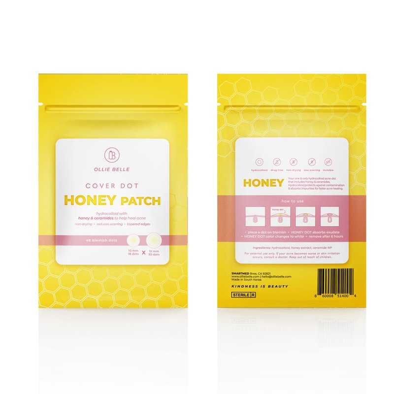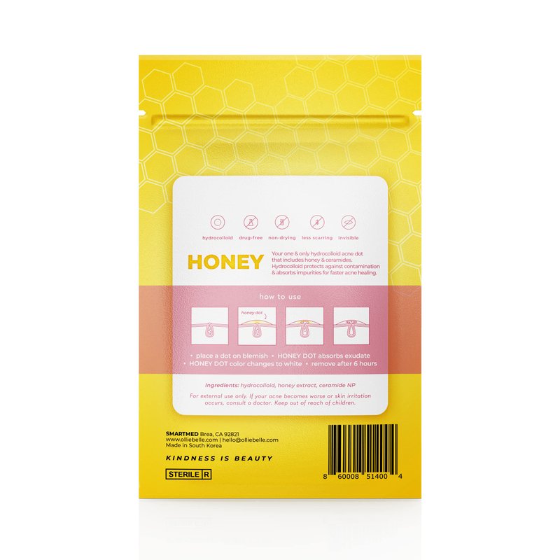 - [Honey + Hydrocolloid] Infused with healing properties of honey and ceramides, Cover Dot Honey Patch covers pimples, whiteheads, or blemishes to protect spots while helping to treat acne using hydrocolloid technology.