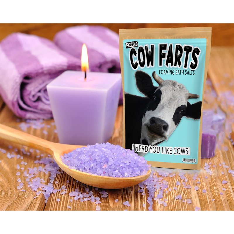 - FOAMING BATH SALT SOAK - Fun little conversation starter and cute cow gifts, cow lover gifts, farm gifts for women. Bring the spa to your house with Cow Farts detoxifying bath salts