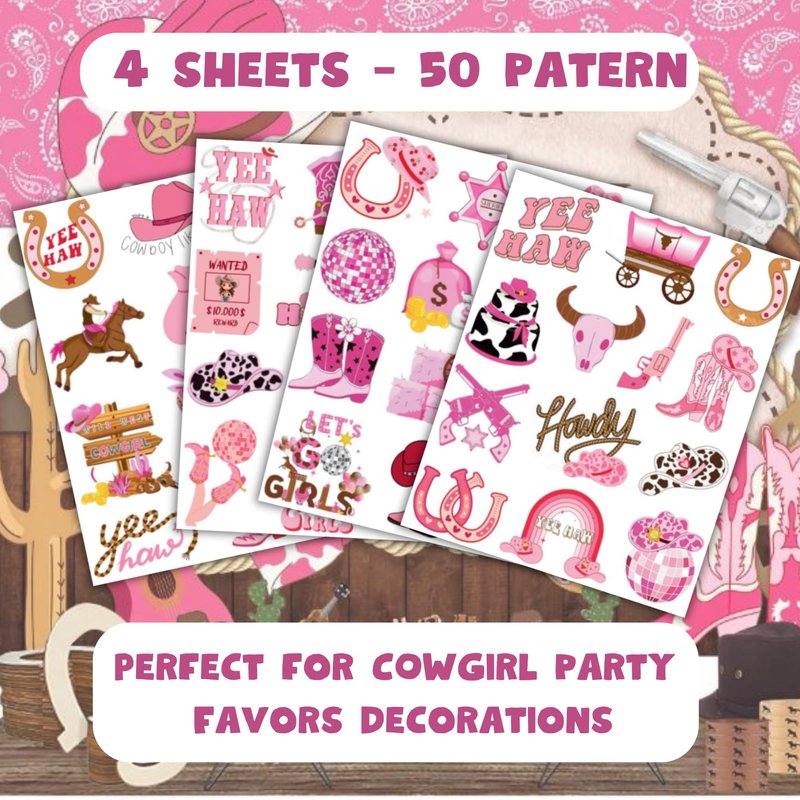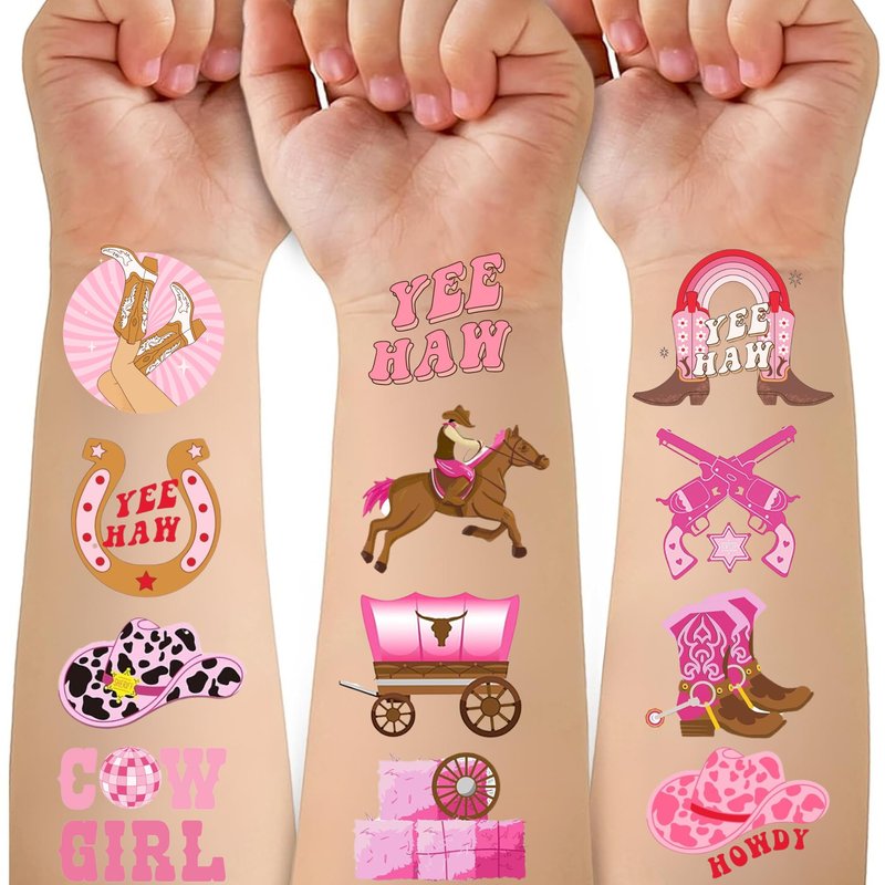 - Widely used: These Disco Cowgirl Pink Western Horse Rodeo Temporary Tattoos pieces are suitable for many occasions such as birthday parties, baby showers, birthday gifts, party decorations, christmas party, gatherings and other special celebrations. It also can be applied on laptop, cup, luggage, phone case and so on which could make you look more impressive.