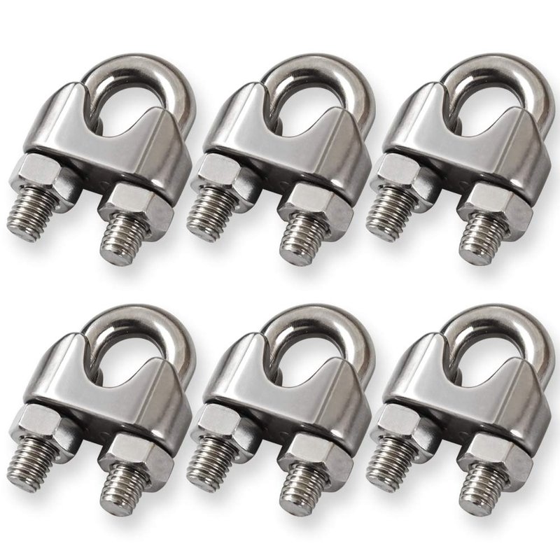 Cozihom 3/8 Inch M10 Wire Rope Cable Clip Clamp, 304 Stainless Steel, U Bolt Saddle Fastener, 6 Packs