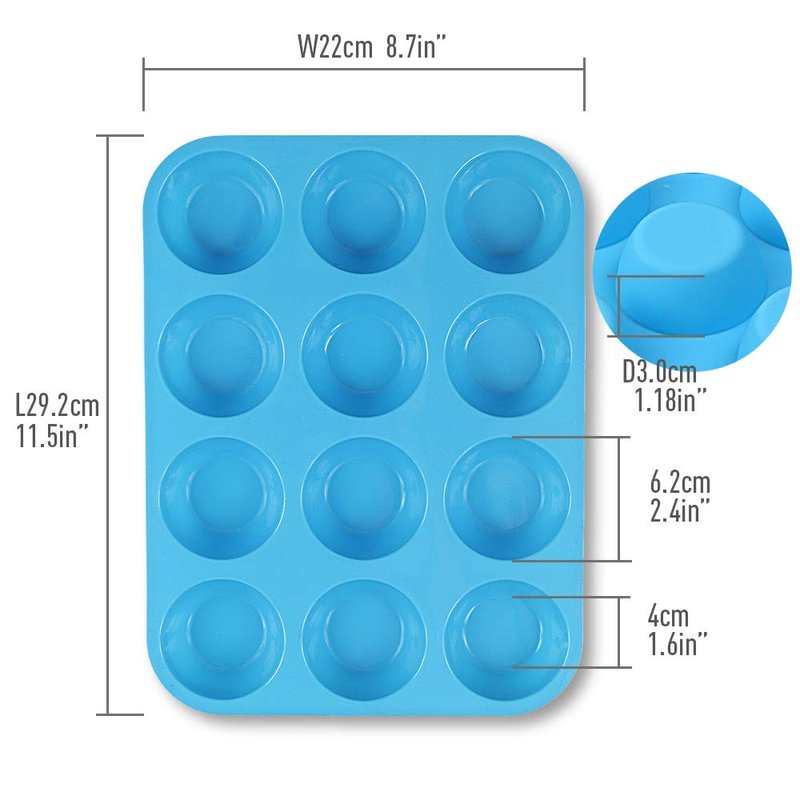 Cozihom Silicone Muffin Pan, Cupcake Pan, 12 Cups, Food Grade Egg Muffin Baking Silicone Molds, Non-stick, 3 Pcs