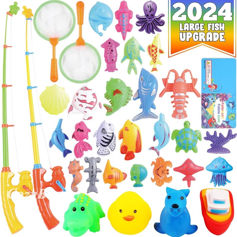 - 🐟MULTI-PLAYER GAME | Designed for kids vs kids or parent vs kids interaction and competition. Let's go fishing and role pretend play carnival together! Game instruction and rules are included. Nice bath toys for infants 6-12 months and gift for kids!