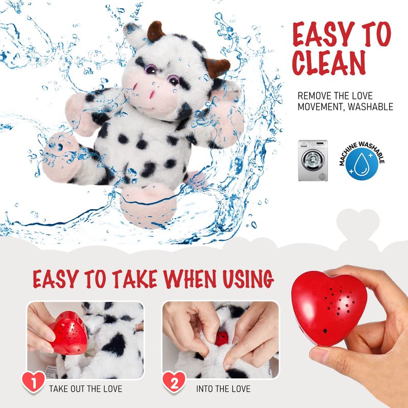 CozyWorld 12.5" Heartbeat Diary Cow Recordable Stuffed Animals Voice Sweet Messages Recorder Soft Plush Toy Playback Your Words Birthday Gifts for Toddler Kids