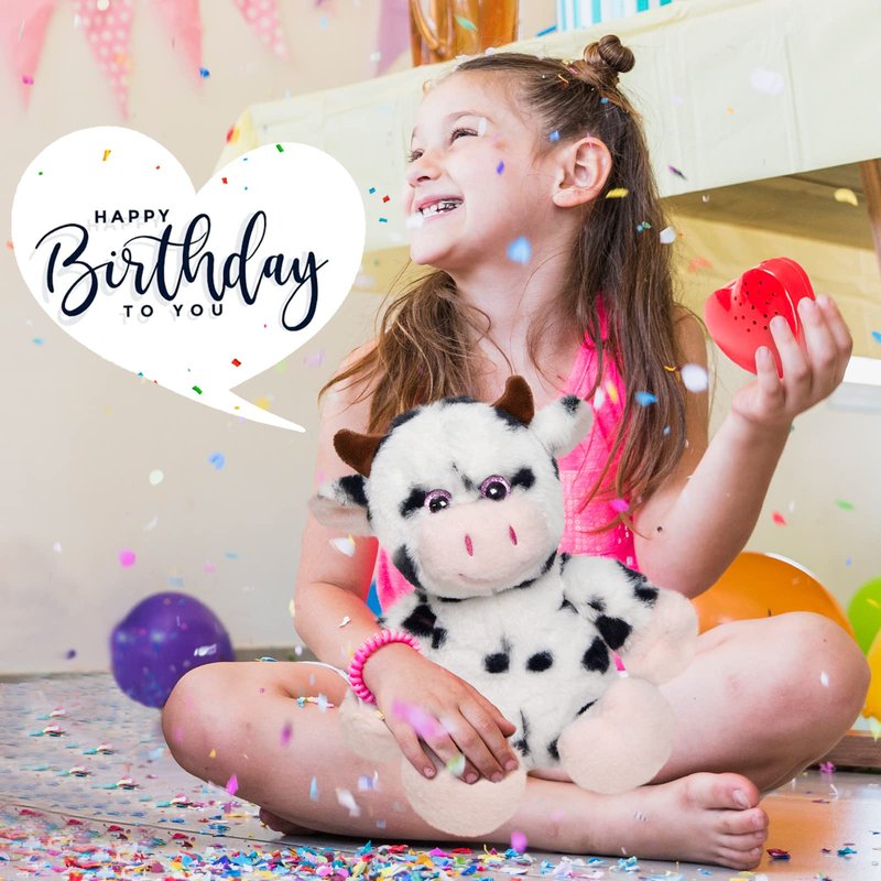 - ADORABLE DIARY COW TOY: Our heartbeat stuffed diary cow toy is designed to be very adorable, as it has two adorably big glittering feet, drooping hands, and cute mouth and eyes, and wears diary cow pattern faux fur. It looks lovely and happy as if sitting casually. Sure to be any little kids' favorite plushy companion, or a fun addition to plushie collection.
