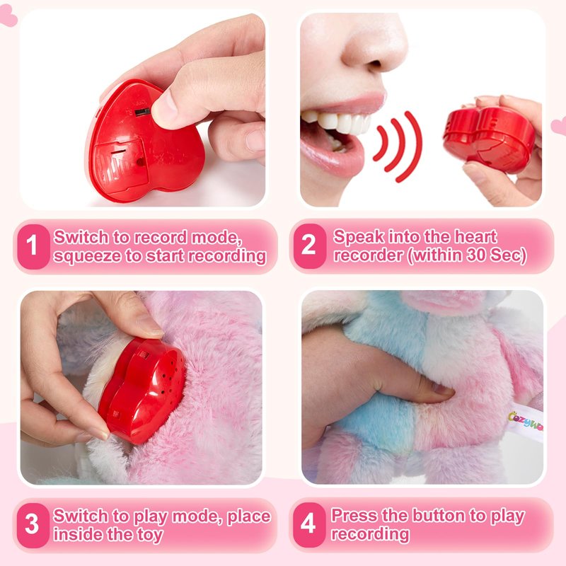 CozyWorld 12.5" Heartbeat Unicorn Recordable Stuffed Animals Voice Sweet Messages Recorder Soft Plush Toy Playback Your Words Birthday Gifts for Toddler Kids