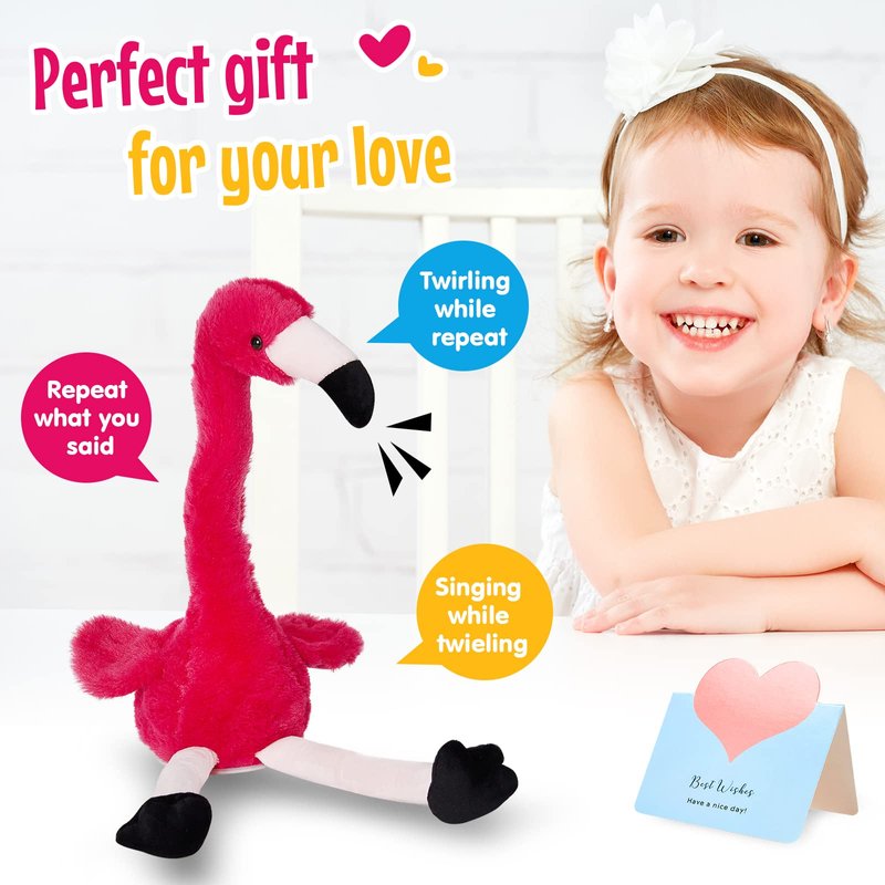 - NECK TWISTING DANCE: When talking Flamingo toy is repeating talking, it twists neck happily, just look like dancing. Switch it on and talk to it, the plush flamingo toy will do its job