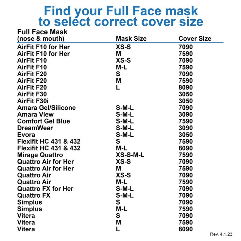 CPAP therapy needs to be comfortable; often it is not. Air leaks, red pressure marks, skin irritation? A better night's sleep is just a Comfort Cover away. Since 2015, the original blue soft cotton/polyester CPAP Comfort Cover mask liner. View the picture charts at the top left to see which size cover you need. Prescription not required.