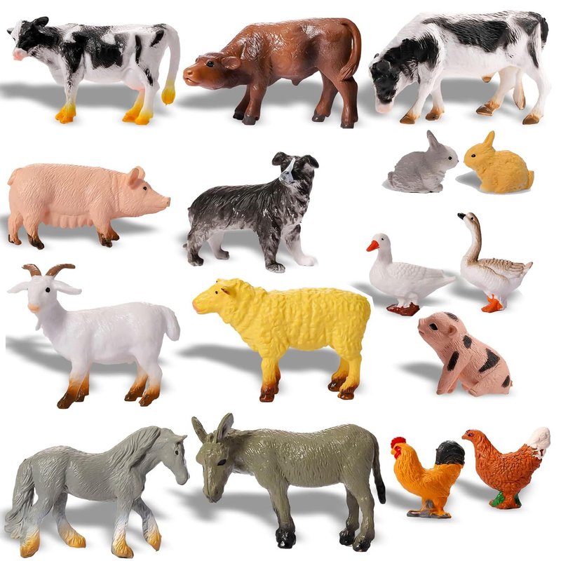 - Farm Animals Set: This set includes 16 farm animal figurines, featuring horses, pigs, donkeys, sheep, dairy cattle, ducks, swans, roosters, dogs, rabbits, and more. Please check to ensure the dimensions meet your needs before purchasing