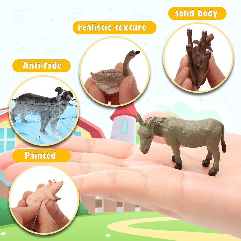 - Educational Learning Tools: This mini farm animal figurine set can be introduced to help you learn about nature and wildlife, fostering imagination and creativity. Ideal for sparking curiosity and learning during family time