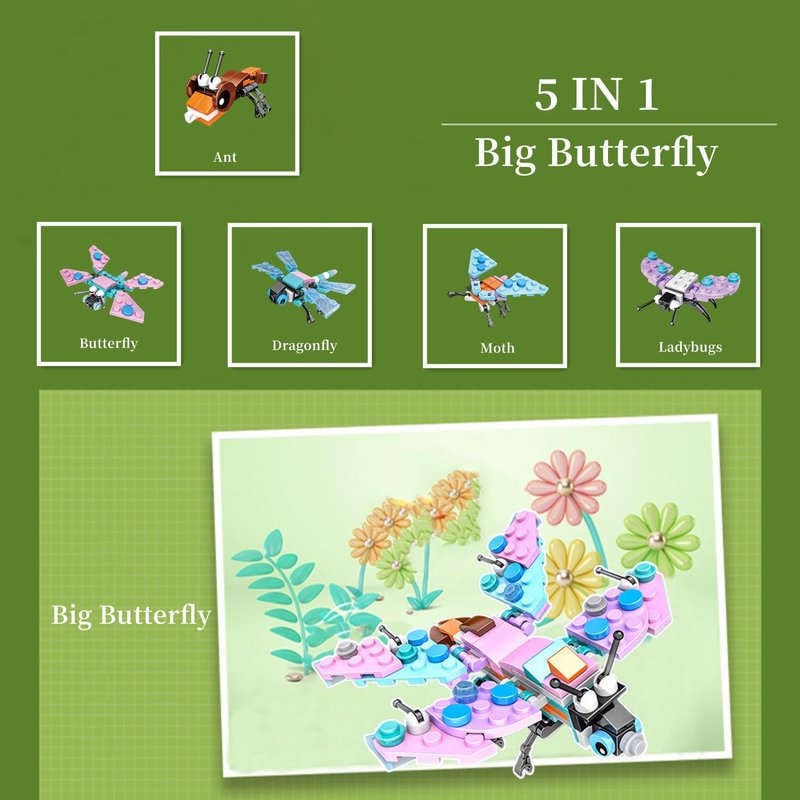 - 【10 IN 1】The set of bug building blocks toys for kids comes with ants, butterflies, moths, ladybugs, dragonflies, beetles, bees, beetles, flies, and grasshoppers. They can not only be assembled into 10 different shapes of sets but also combined to build a mantis.