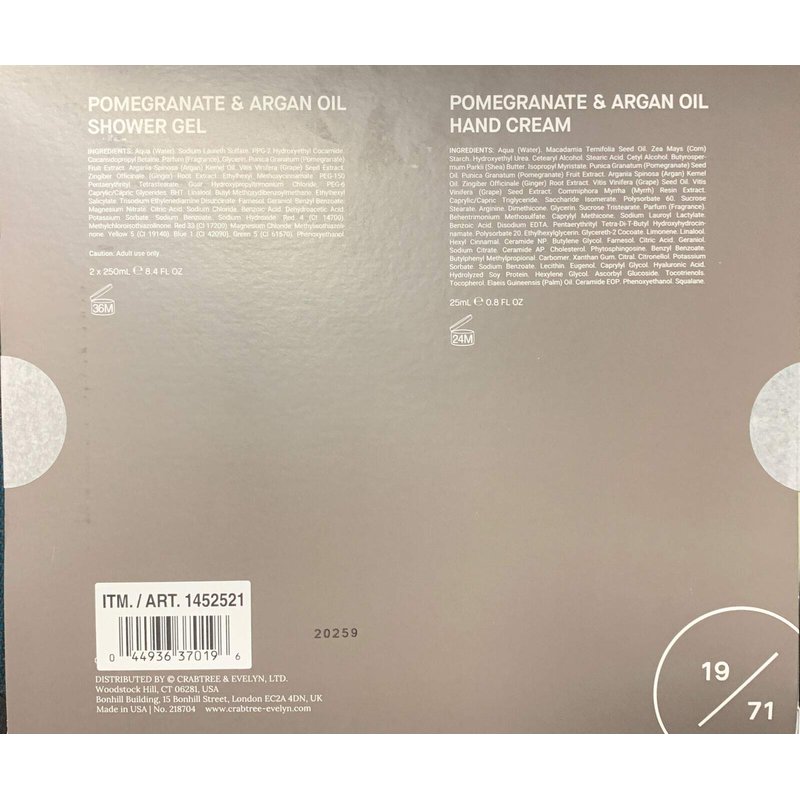 - Crabtree and Evelyn Pomegranate & Argan Oil Shower Gel: Our Pomegranate & Argan Oil Shower Gel is a day-to-day treat for all the senses with a scent designed to let your imagination run wild.