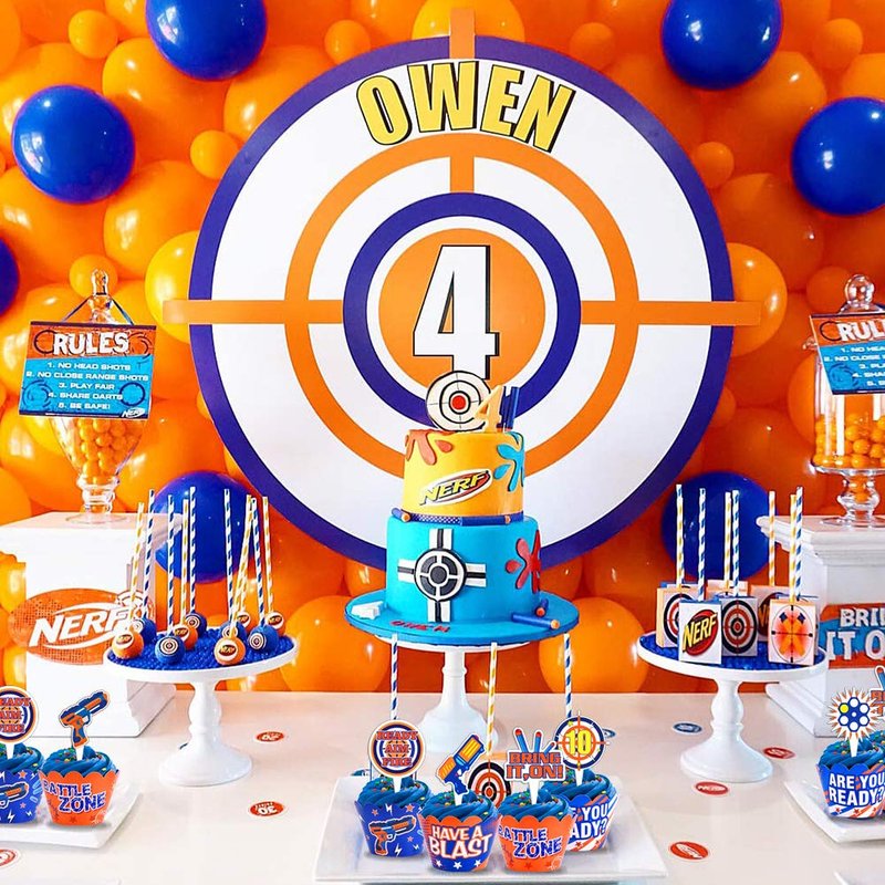 - EASY Dart Battle Kid Party Decorations: Dart Battle party cupcake wrappers make it easy to style a theme party. Create impressive cupcake towers with decorated treats placed on a tiered stand at the candy buffet table, style adorable tables with individual cupcakes at each place setting, or make creative centerpieces using decorated treats and a coordinating treat stand.
