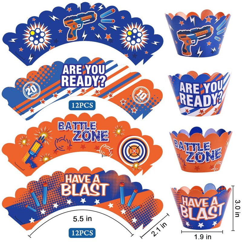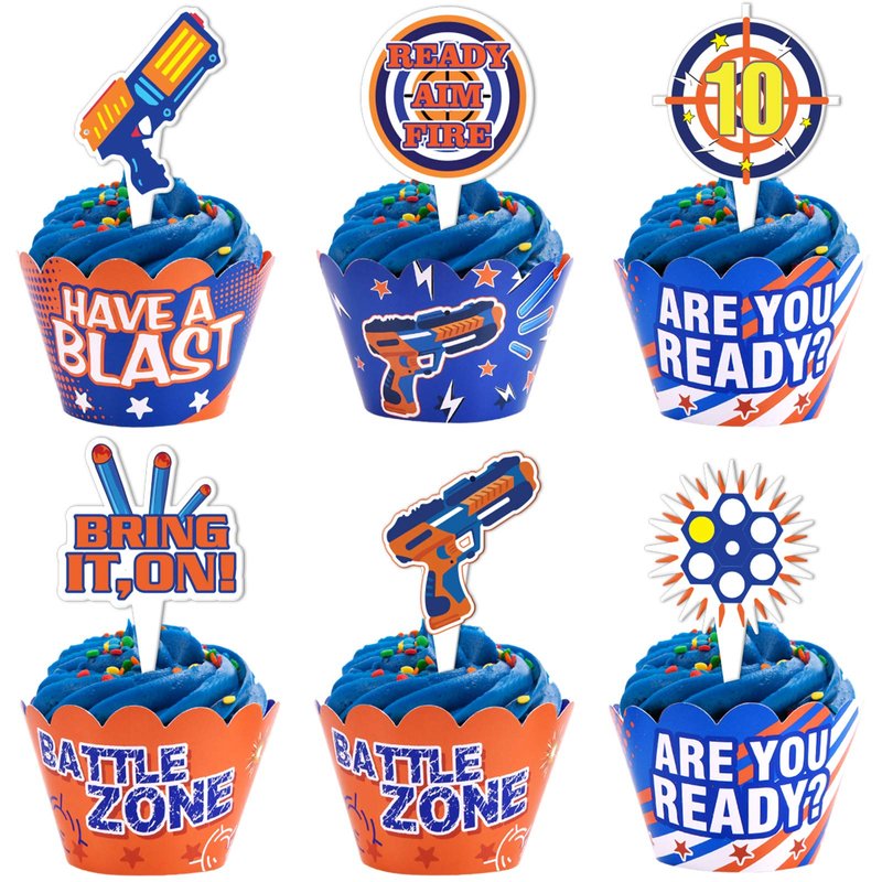 - Dart War Party Supplies - Dart War Dessert Cupcake Toppers INCLUDES 24 Gun Picks Target Bullet War toppers, 24 cupcake wrappers.Cute kids Dart War cupcake supplies are perfect for a kid's birthday party.