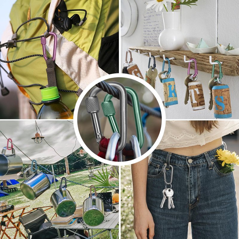 - 【Safety Lock】With D shape quick spring loaded gate design, screw can lock the carabiner to hold the bag, water bottle, key ring or other things and avoid falling off.