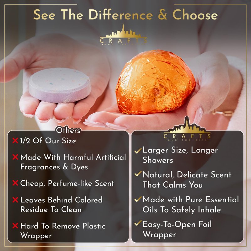 Crafts And The City Luxury Shower Steamers Aromatherapy Gift Set -Made in USA Essential Oil Shower Bath Bombs for Women- Shower Fizzies Scents Vapor Pods Melts Tabs Soothers