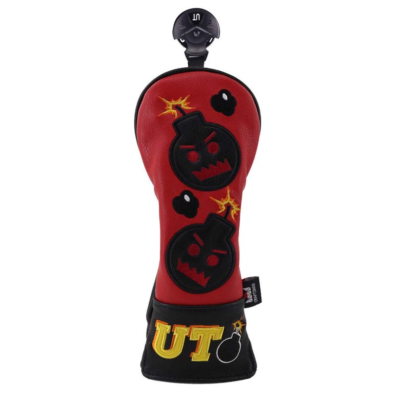 Craftsman Golf Rescue Hybrid Headcover Embroidery Bomb, Red and Black PU Leather Golf Head Covers for Hybrid (Hybrid Cover UT)
