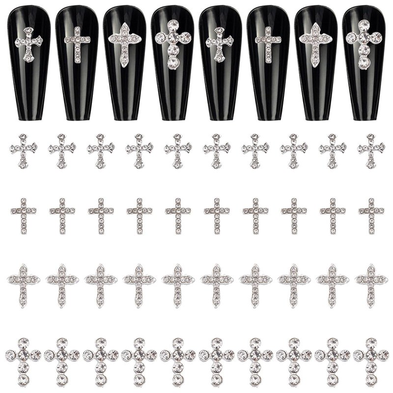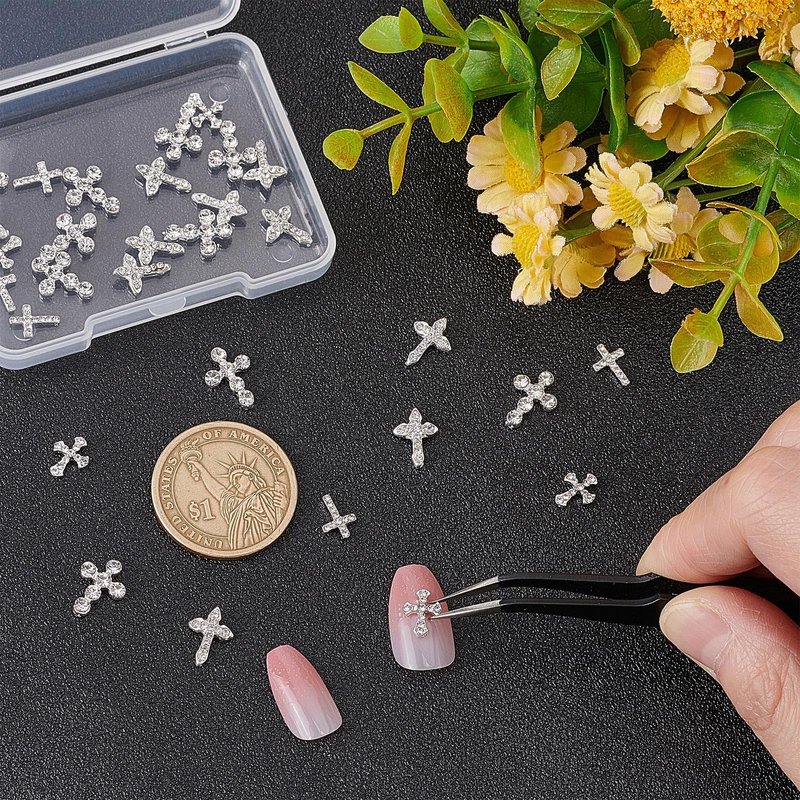 - Package: 40pcs 4 style rhinestone cross nail charms.