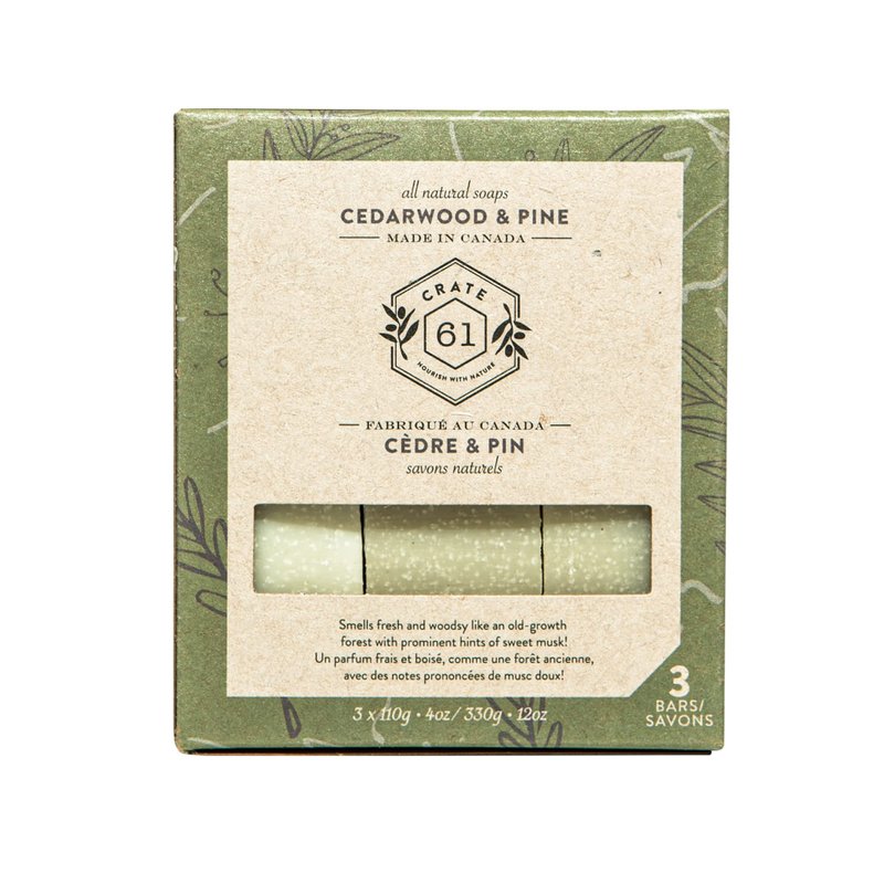 Crate 61, Handmade Vegan Natural Bar Soap Cold Pressed For Face And Body, With Premium Essential Oils, Eucalyptus & Peppermint For Men And Women 3 Pack (Cedarwood Pine)