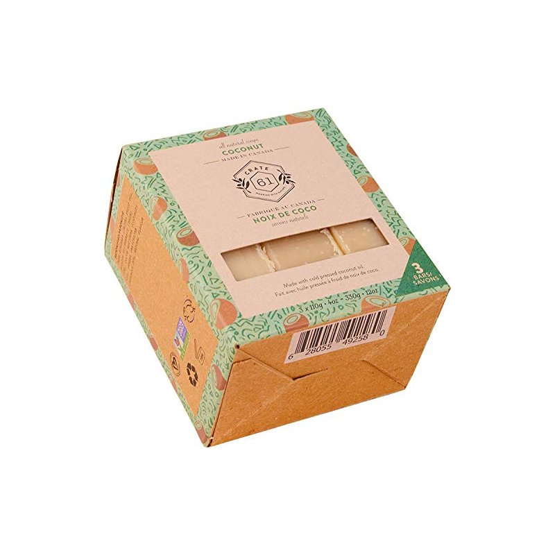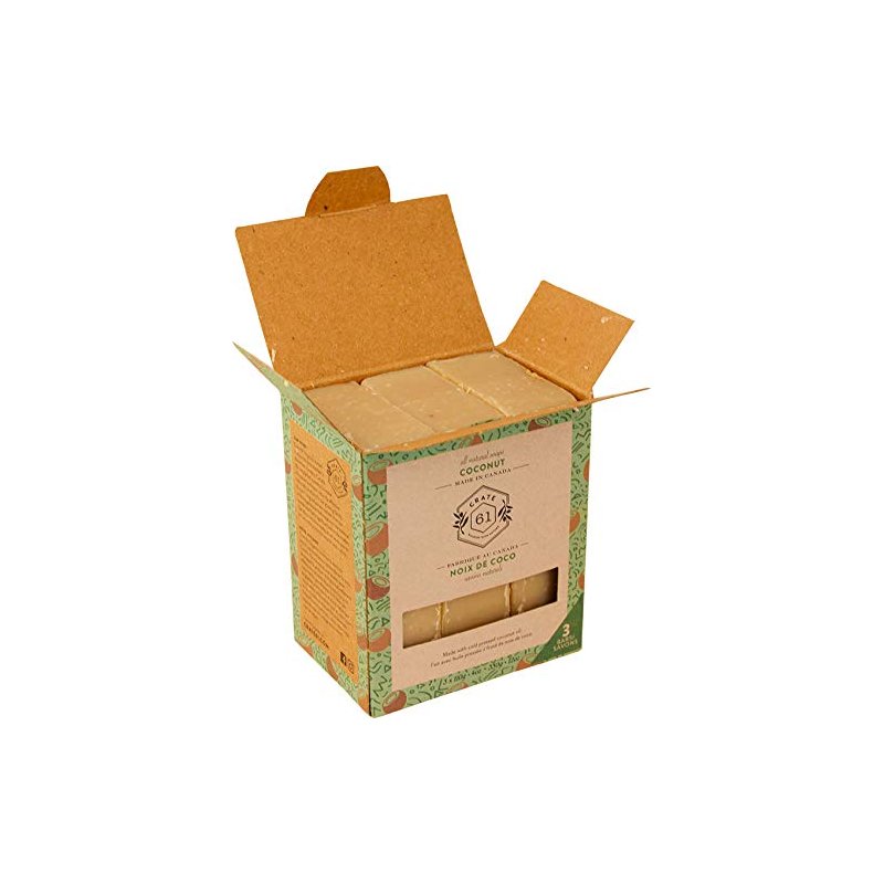 Crate 61, Vegan Natural Bar Soap, Coconut, 3 Pack, Handmade Soap With Premium Essential Oils, Cold Pressed Face And Body Bar Soap For Men And Women (4 oz, 3 Bars) Coconut 3 Pack