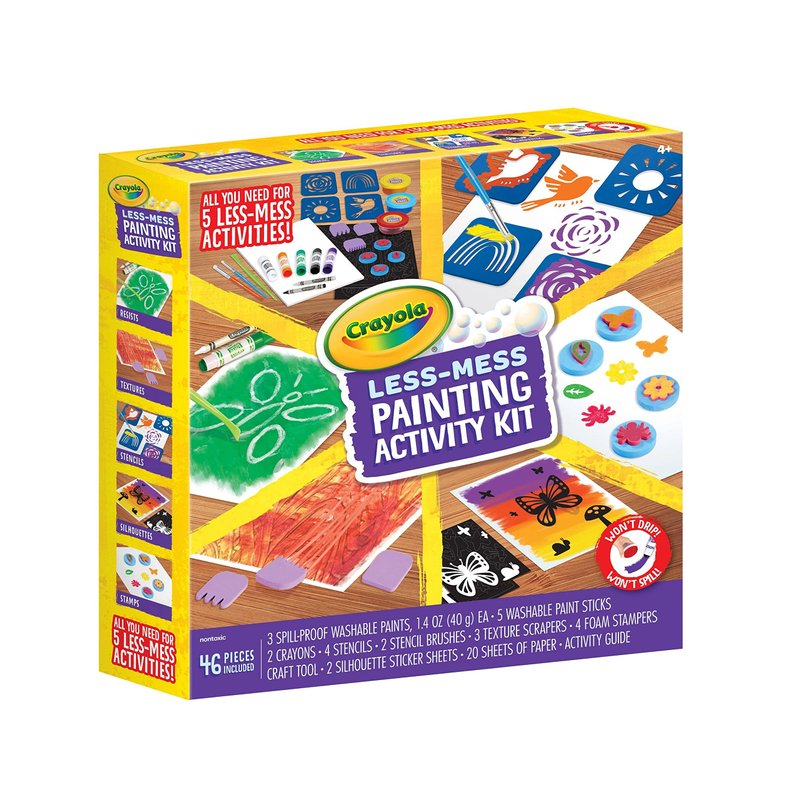Crayola Less Mess Painting Activity Kit (46pcs), Kids Art Set, Washable Kids Paints, Gifts for Kids, Ages 4+