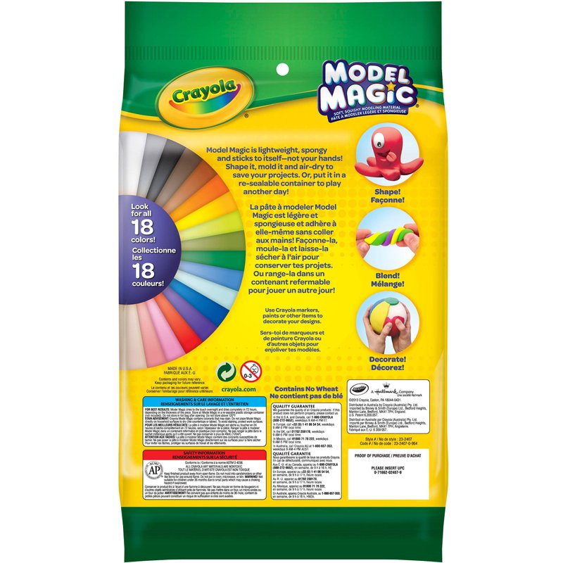 - MODEL MAGIC: This lightweight, spongy modeling material sticks to itself—not your hands. Model Magic 6 Color Craft Pack comes with one 2.5 ounce pack each: Red & Blue and one 0.5 ounce pack each: Yellow, Black, White & Green.