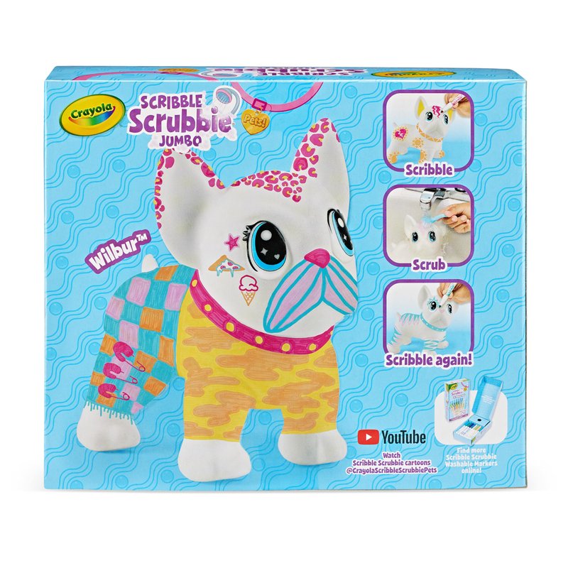 - SCRIBBLE SCRUBBIE PETS JUMBO: Features 1 Jumbo Scribble Scrubbie pet that can be posed, and 5 Washable Markers to color with!