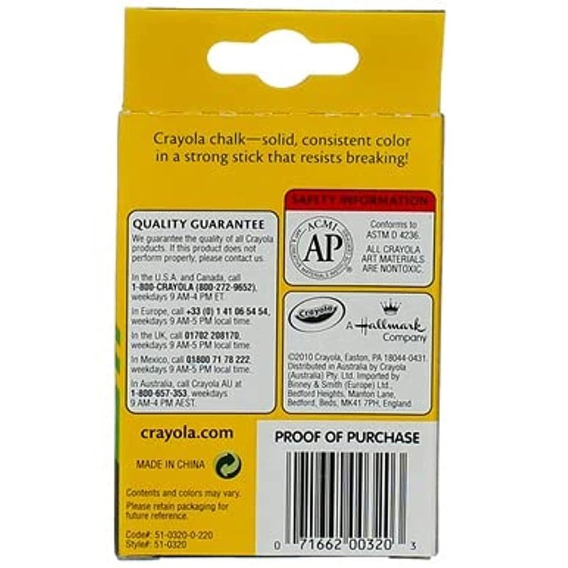 - 12 sticks of white chalk. Recommended for Kids: 4 and up