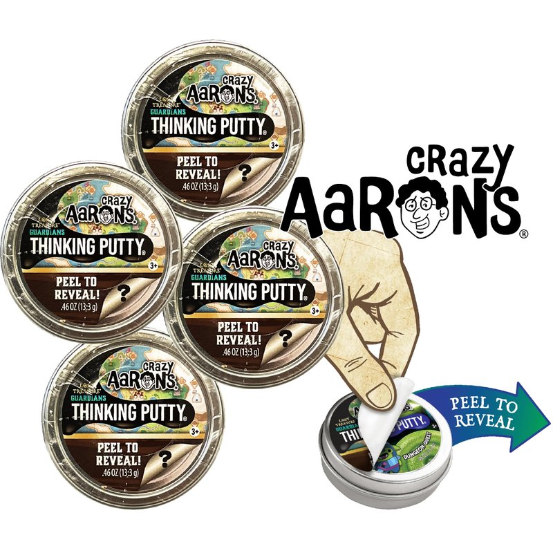 - Fun for all ages: Whether you're a kid or an adult, Crazy Aaron's Lost Treasure Guardians offer captivating entertainment for the whole family. This 4-pack gift set is non-toxic, won't dry out, and leaves no sticky or slippery residue on your fingers. Made in the USA, it guarantees a high-quality and safe play experience for ages 3 and up. Peel to reveal your surprises and see which Lost Treasure Guardians putty and charms you'll get!