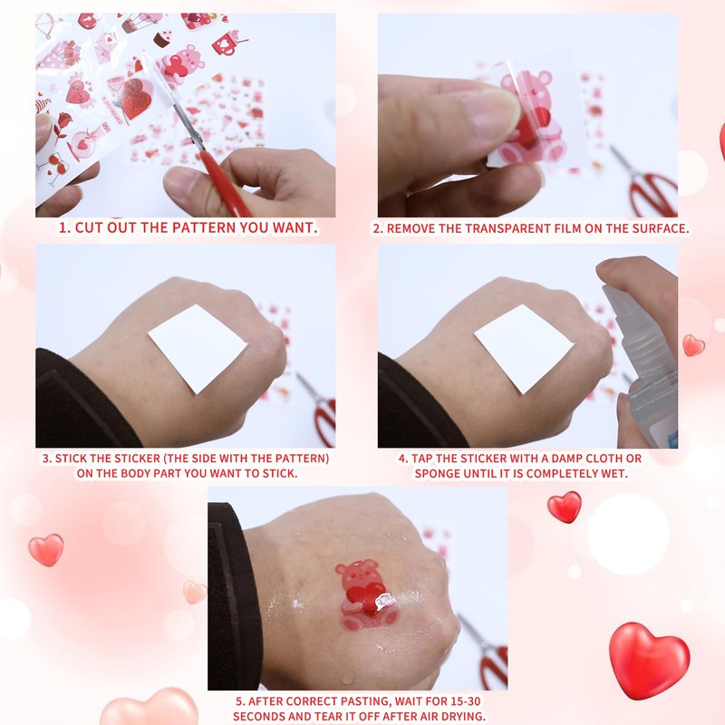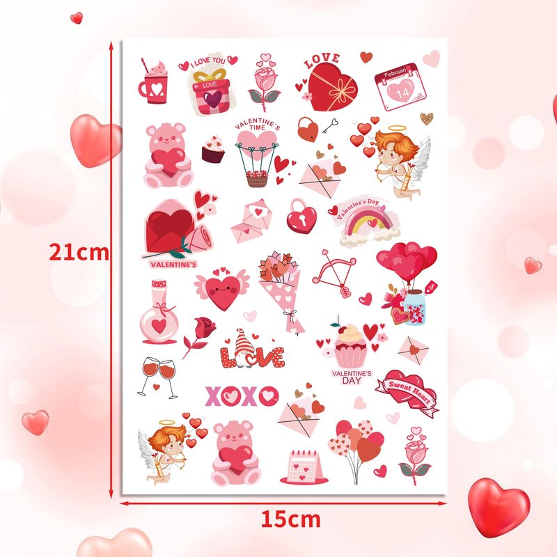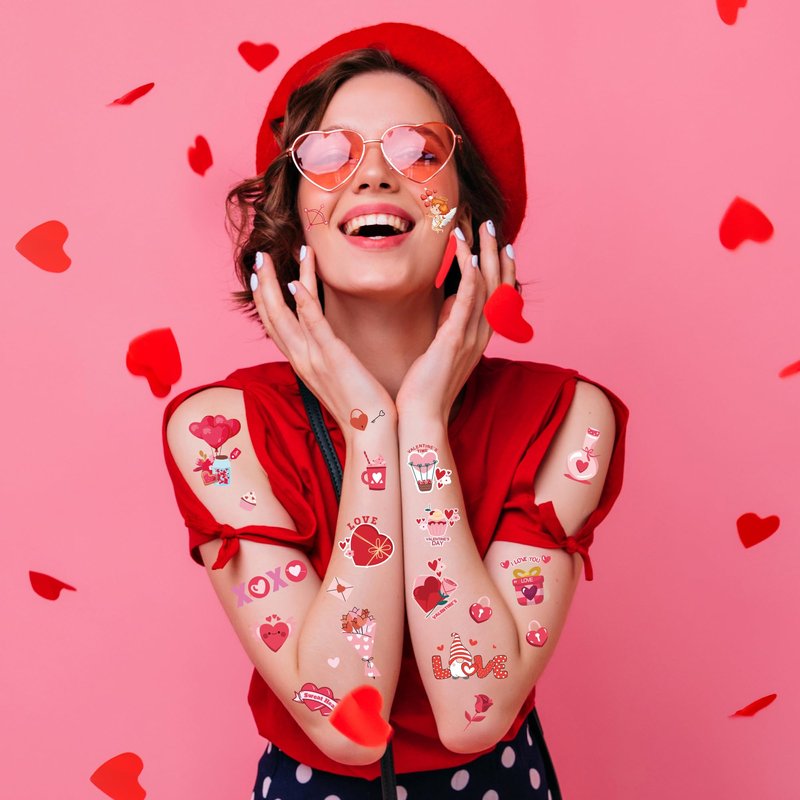 - 【Unique Design】These valentines temporary tattoos are designed with classic Valentine's Day elements, such as cupid, hearts, love and more, full of festival atmosphere, adding more fun to your Valentine's Day party; You can apply these fake tattoos on your face, arms, neck, back and other body parts.