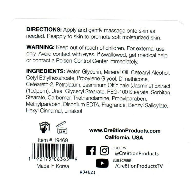 - BIGGER SIZE: The Cre8tion lotion Jasmine comes in 750ml / 25 fl oz. We are located in California USA to bring you only the highest quality products. We are here for any questions and better customer service.