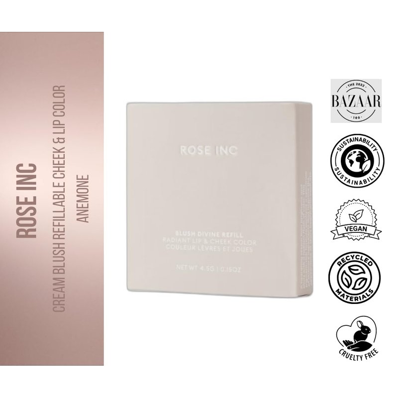 - Clean ingredients: Rose Inc blush refillable blush for cheeks contains Squalane 100% plant-derived, provides weightless hydration, vitamin E powerful antioxidant and hyaluronic Acid that smooths imperfections.